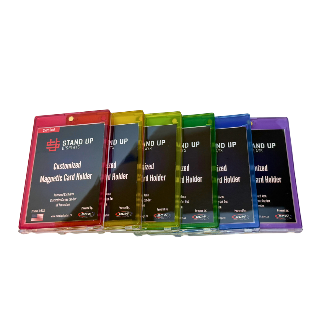 Our custom stands will display your cards, coins, tickets, packs, and more!