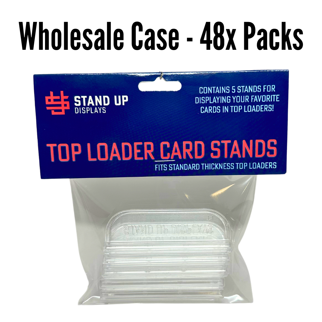 Cleanly display your trading cards with our Top Loader Card Stands! Custom designed to fit your Standard (20-35pt) Top Loaders from brands like Ultra Pro®, Vanity Slabs, and Cardboard Gold®! Simply slide your case into the stand and easily display in a case or on a shelf! Made from robust translucent plastic.
