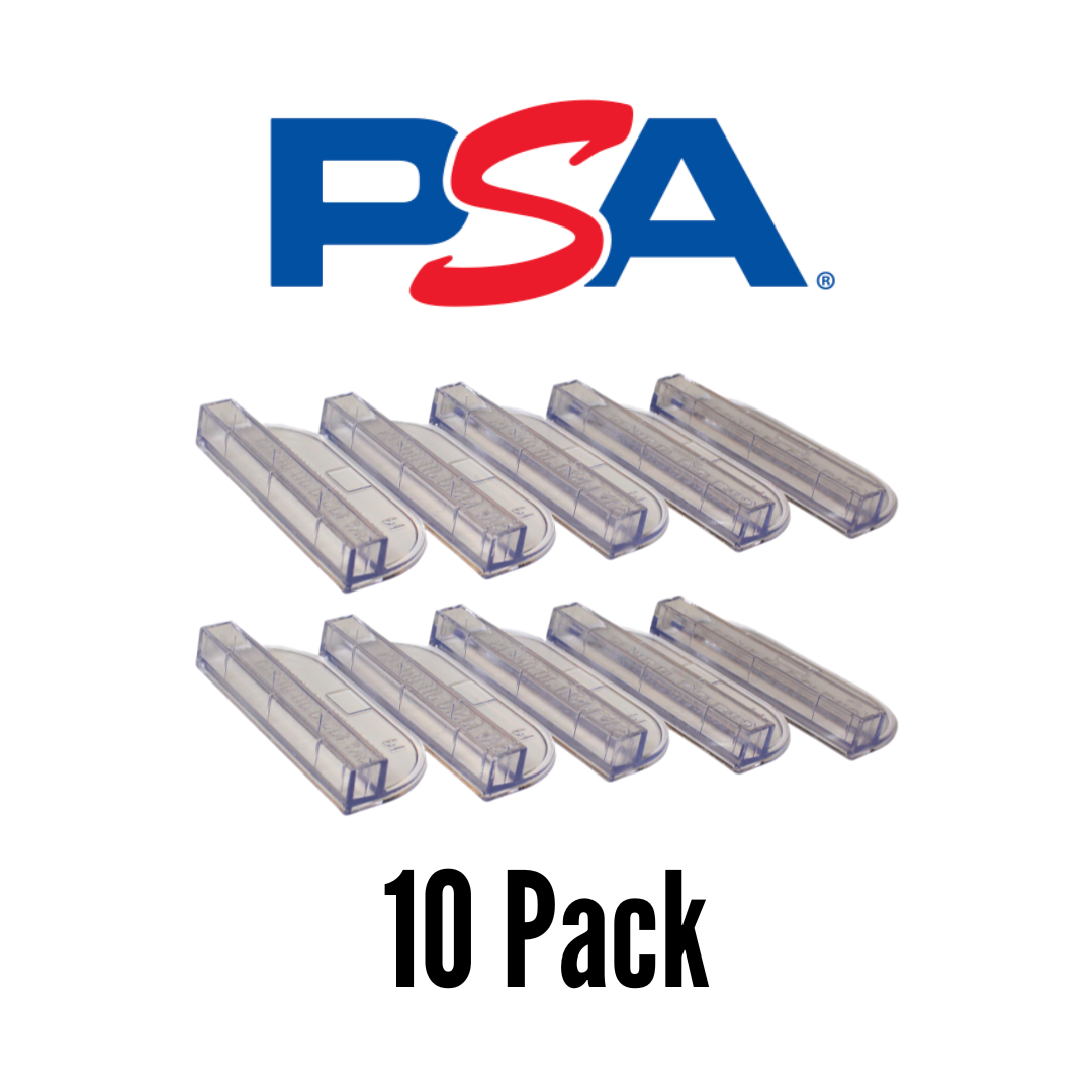 Cleanly display your PSA Graded trading cards with our Graded Card Display Stands! Custom designed to fit your PSA or Vanity Slab slabbed cards. Simply slide your case into the stand and easily display in a case or on a shelf! Made from robust translucent plastic.